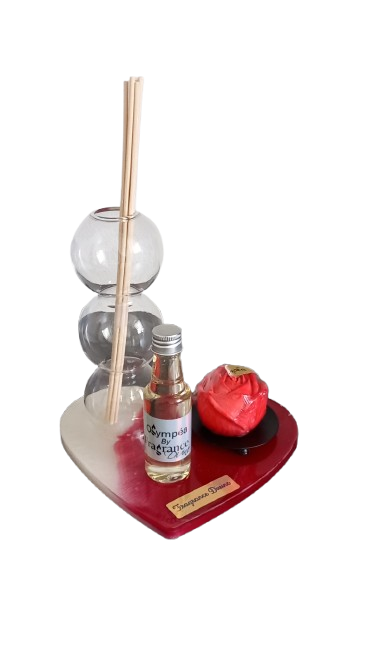 Découvrez notre plateau en forme de cœur de la gamme Amour Floral Diffusée : un diffuseur en époxy avec un vase diffuseur.